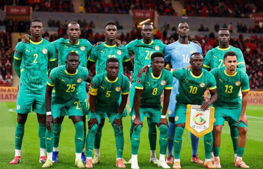 Senegal players pose for a group photo before the start of the Africa Cup of Nations (CAN) final football match between Senegal and Morocco at the Prince Moulay Abdellah Stadium in Rabat on January 18, 2026. (Photo by Franck FIFE / AFP via Getty Images)